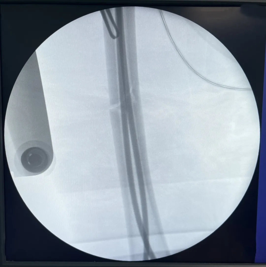 經(jīng)與家長(zhǎng)詳細(xì)溝通,我院骨科專家團(tuán)隊(duì)決定為患兒實(shí)施右股骨干骨折閉合復(fù)位彈性髓內(nèi)釘內(nèi)固定手術(shù)。術(shù)中,顧署光主任及趙飛副主任醫(yī)師在團(tuán)隊(duì)專家及手術(shù)室、麻醉科醫(yī)護(hù)人員的配合下,憑借精湛的醫(yī)術(shù)與熟練的操作手法,在樂樂患肢內(nèi)外兩側(cè)開了2個(gè)不足2cm小切口,對(duì)稱插入兩根彈性髓內(nèi)針,利用鈦合金或不銹鋼良好的彈性恢復(fù)力作用于骨骼,通過髓腔的3個(gè)接觸點(diǎn)轉(zhuǎn)換成推力和壓力,從而使骨折復(fù)位。手術(shù)成功,目前樂樂恢復(fù)良好。