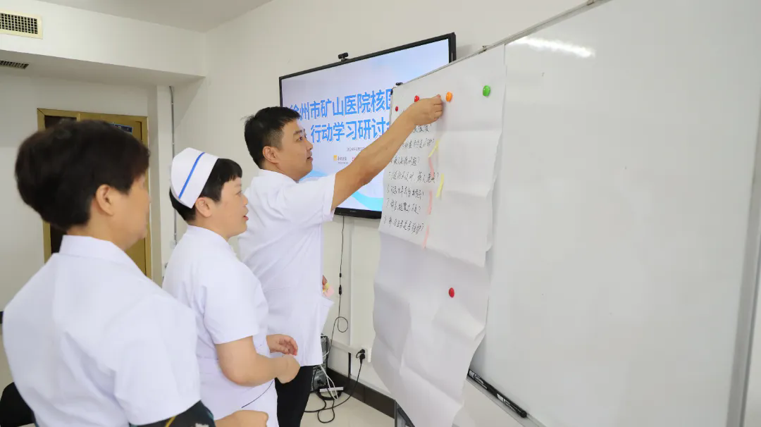 在行動(dòng)學(xué)習(xí)研討環(huán)節(jié),與會(huì)人員分成2個(gè)小組,針對(duì)“核醫(yī)學(xué)科面臨的困難與挑戰(zhàn)”、“如何提升品牌核心競(jìng)爭(zhēng)力建設(shè)”這兩個(gè)核心問(wèn)題展開(kāi)激烈的小組討論與頭腦風(fēng)暴,不斷碰撞新的思想火花。