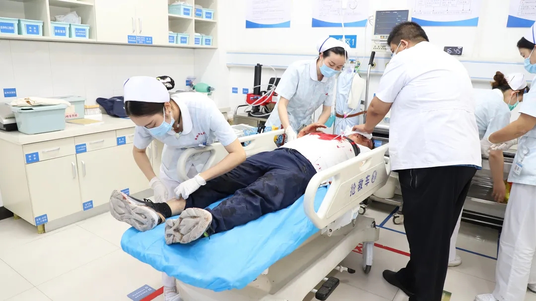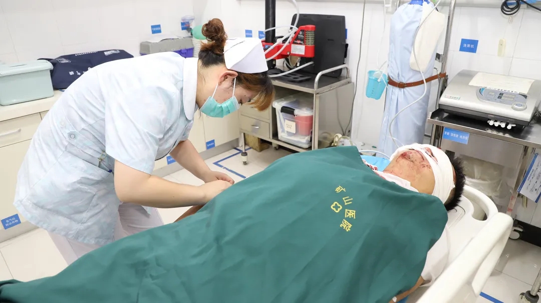 10月6日下午17點(diǎn)10分,徐州市礦山醫(yī)院急診科接到緊急電話(huà),稱(chēng)有一位工人被切割機(jī)劃傷面部,情況危急,大約10分鐘左右可以抵達(dá)醫(yī)院,希望做好搶救準(zhǔn)備。接電后,急診科護(hù)士立即將情況上報(bào)護(hù)士長(zhǎng),并與同事一起做好搶救準(zhǔn)備工作。
