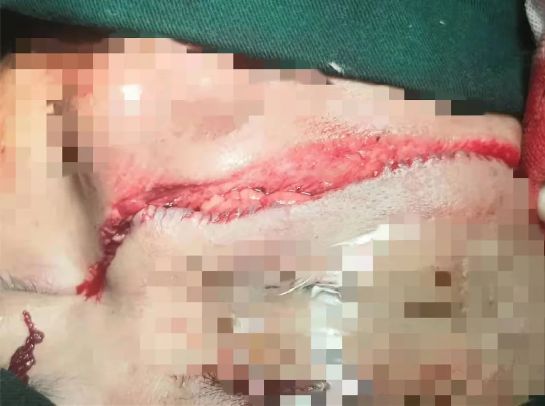 “手術(shù)花了1個(gè)多小時(shí)。”袁麗娟主任說(shuō),考慮到患者面部美觀(guān)的原因,手術(shù)中采用皮內(nèi)縫合,外部傷口用人體組織粘合劑粘合。對(duì)此,整個(gè)手術(shù)特別費(fèi)勁,對(duì)主刀醫(yī)生的技術(shù)要求也是相當(dāng)高。由于傷口“張”得比較開(kāi),皮內(nèi)縫了整整四十六針。